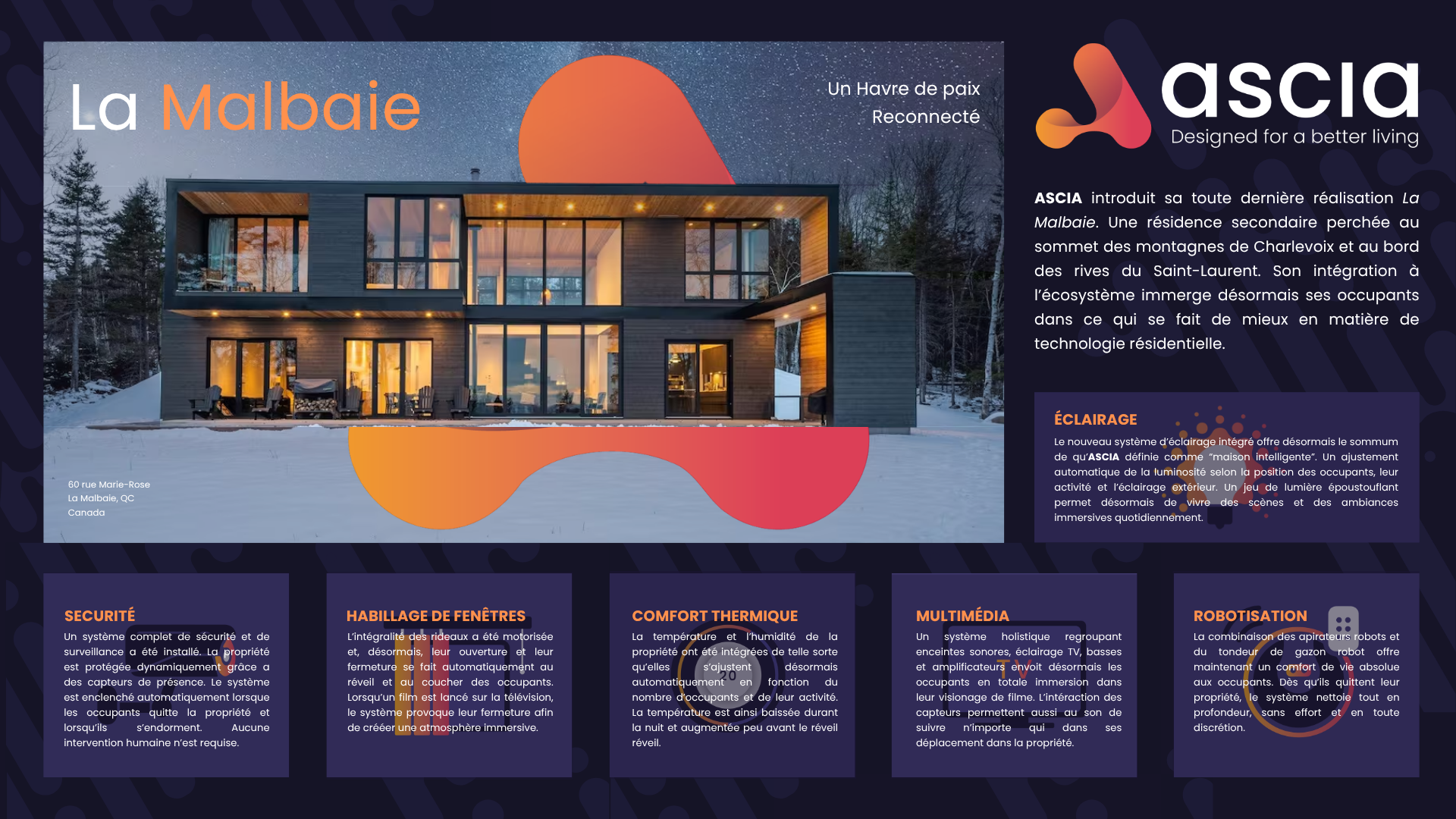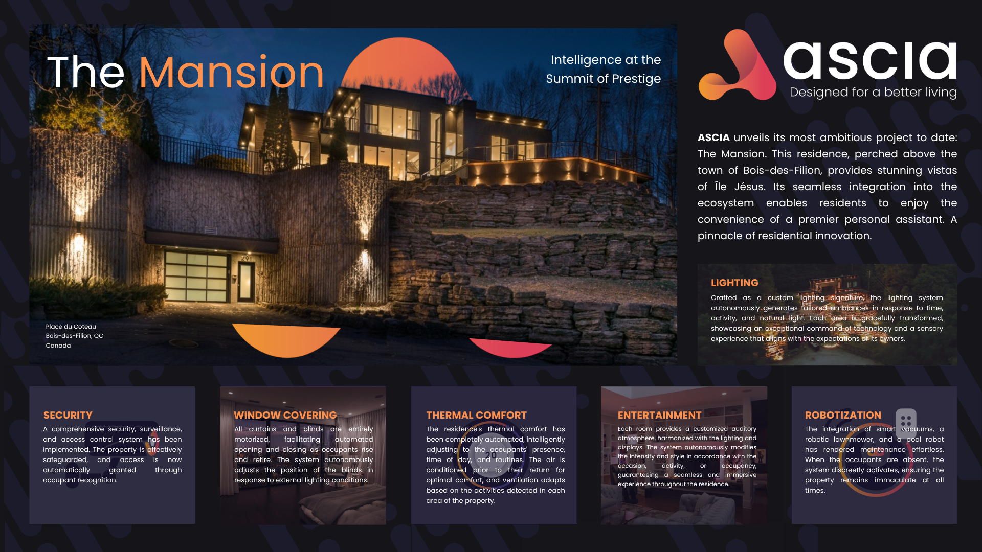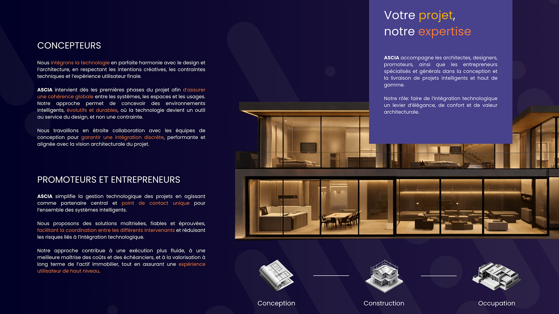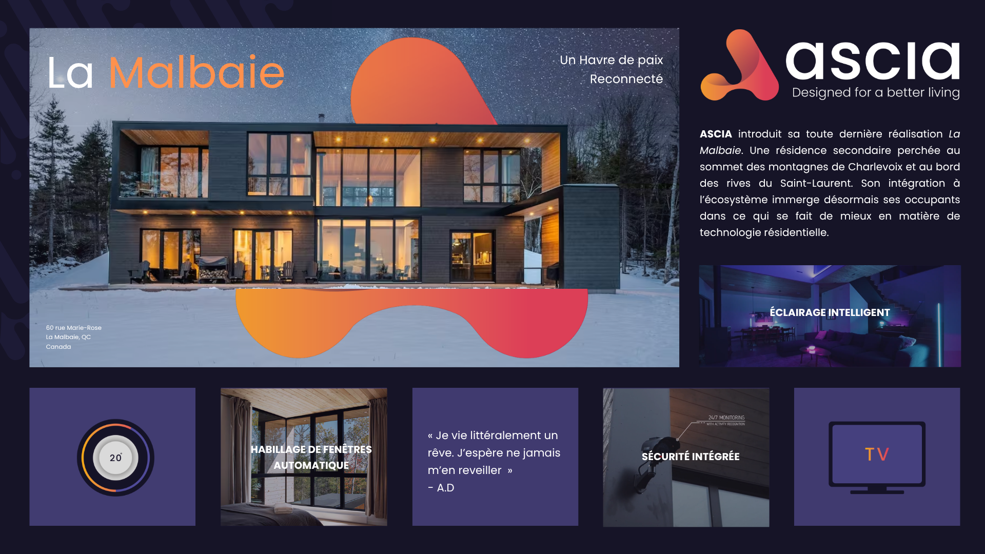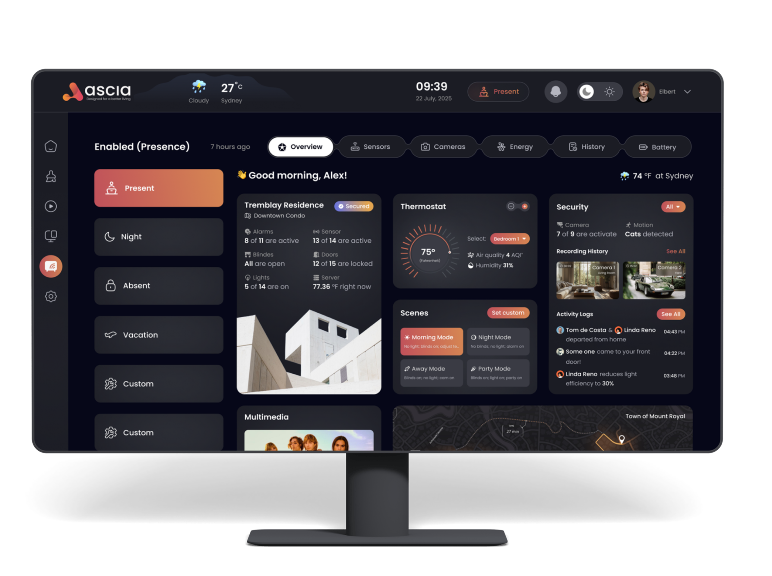 ASCIA focuses on wireless installation, intuitive interfaces and complete control adapted to each home. Our locally managed technology protects your data while offering powerful automation and personalization.